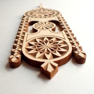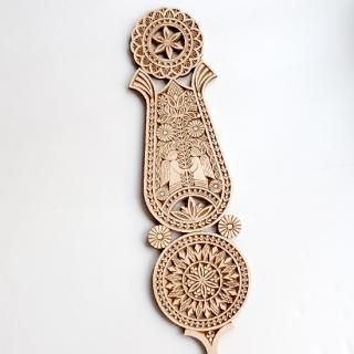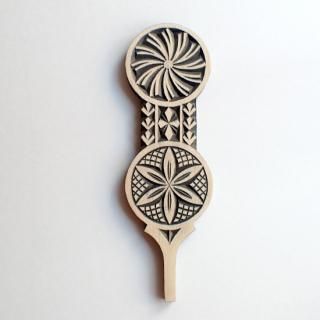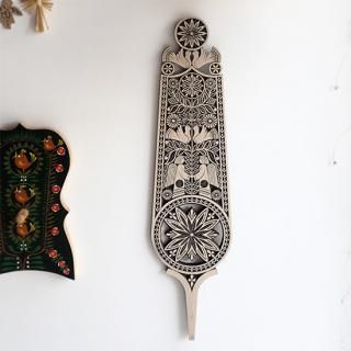 ve010 リトアニア 伝統工芸の壁飾り Verpste ベルプステ 茶ベース 約幅7.5cm×縦23cm ミニサイズ