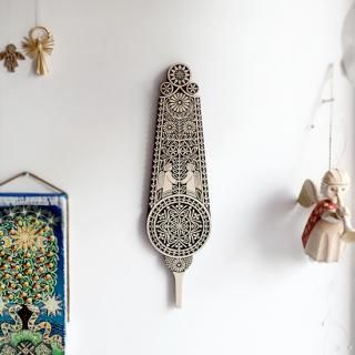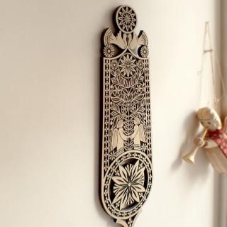 ve087 リトアニア 伝統工芸の壁飾り Verpste ベルプステ 茶ベース 約幅15.5cm×縦63cm 向かい合う天使