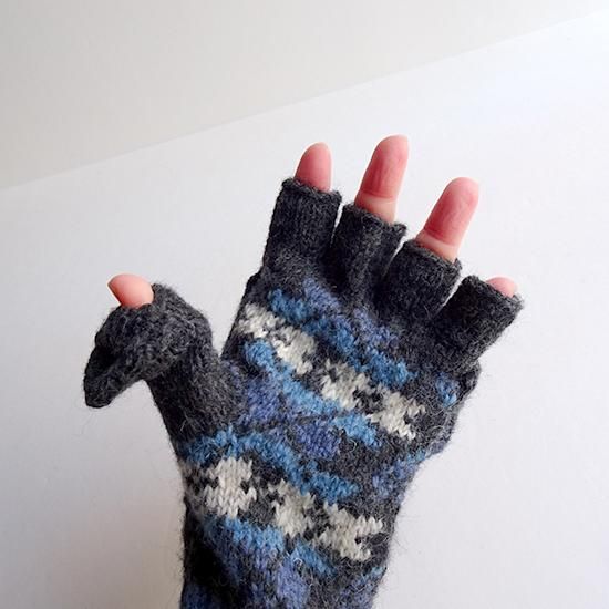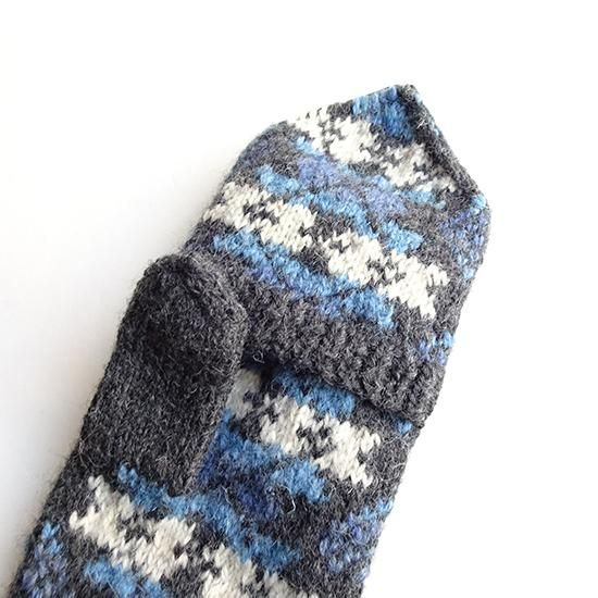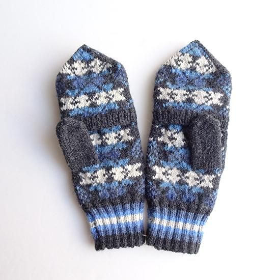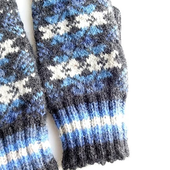 伝統的な柄を編み込んだ味わいのある雰囲気がたまらないかわいさ。手首部分までしっかり防寒してくれます。