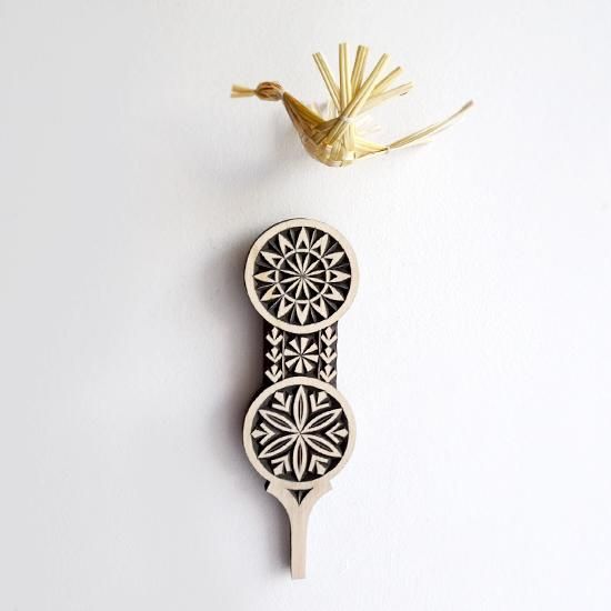 ve072 リトアニア 伝統工芸の壁飾り Verpste ベルプステ 黒ベース 約幅6.5cm×縦20.5cm ミニサイズ