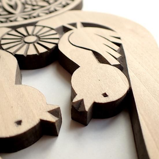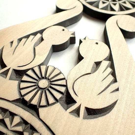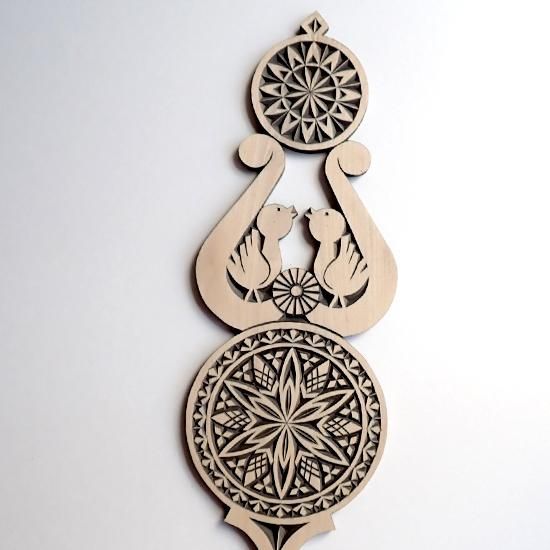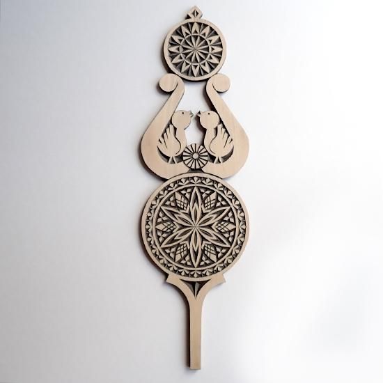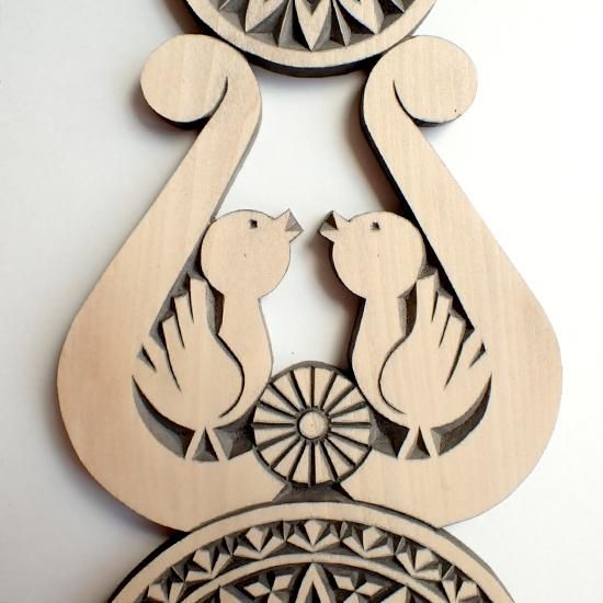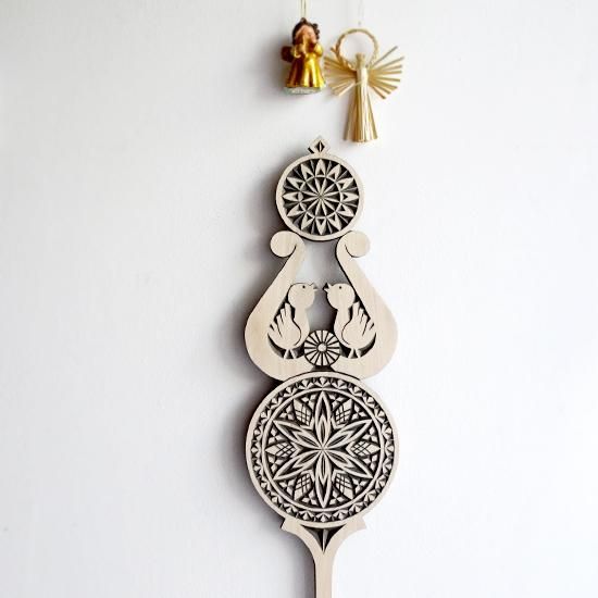 ve075 リトアニア 伝統工芸の壁飾り Verpste ベルプステ 黒ベース 約幅13cm×縦43cm 向かい合う2羽の鳥