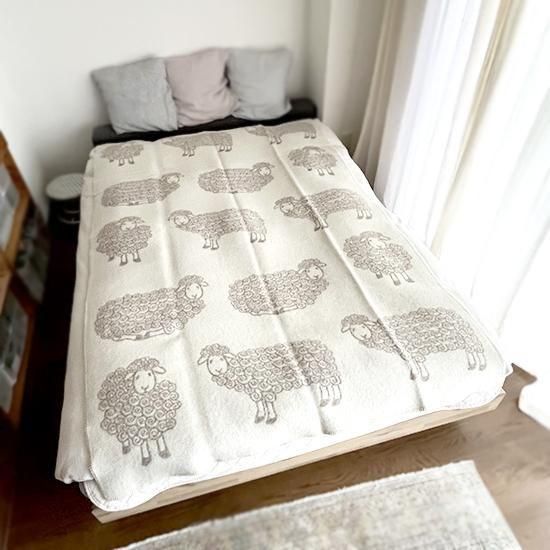 あたたかくてふっくらとした厚みのあるラムウールの毛布。