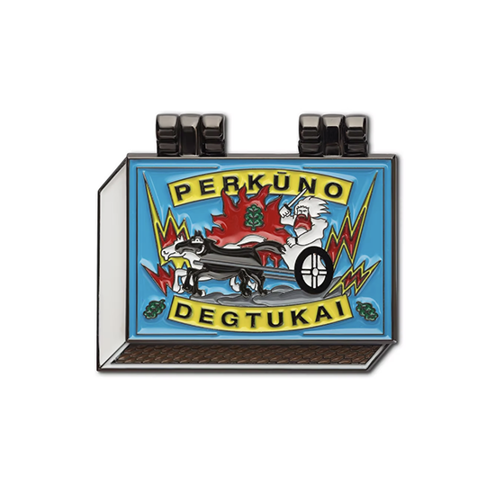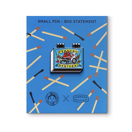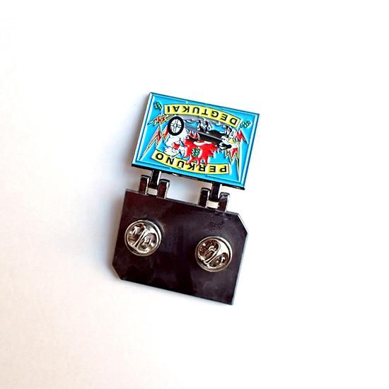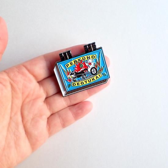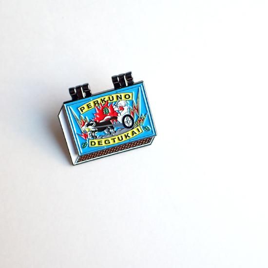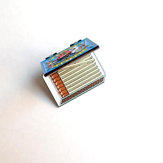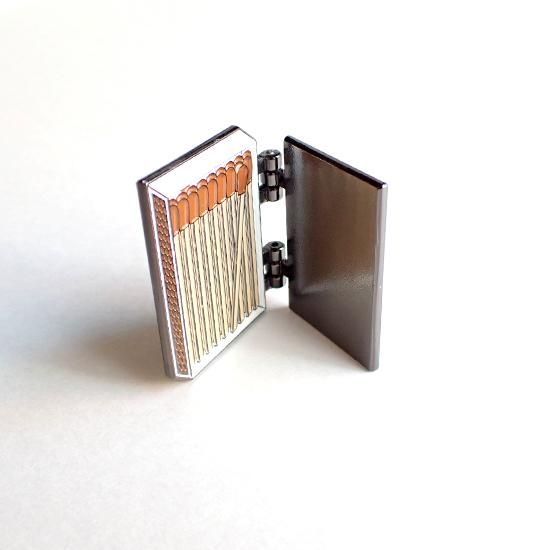 リトアニアで見かける定番のマッチ箱デザインのコチラ、なんと蓋が開きます。パカっと開けるとマッチがずらっと並んでいる遊び心たっぷりの楽しいピンバッジです。