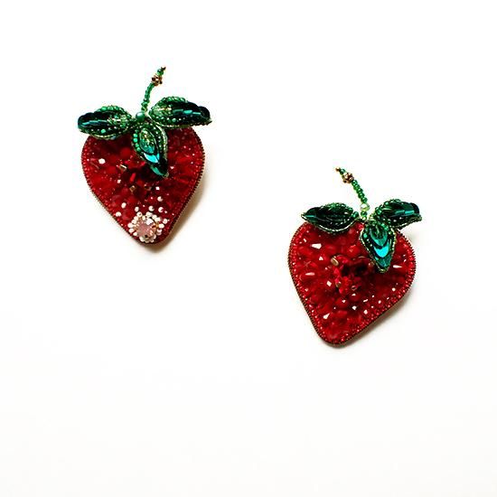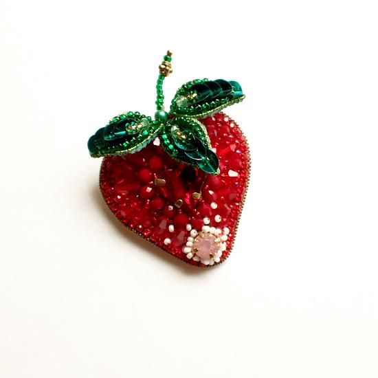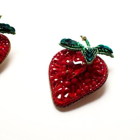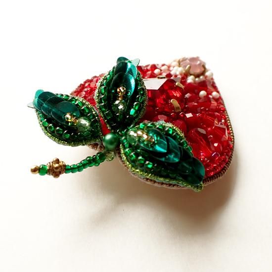 真紅のビーズがぎゅっと詰まったイチゴがキラキラと輝くポイントになります。