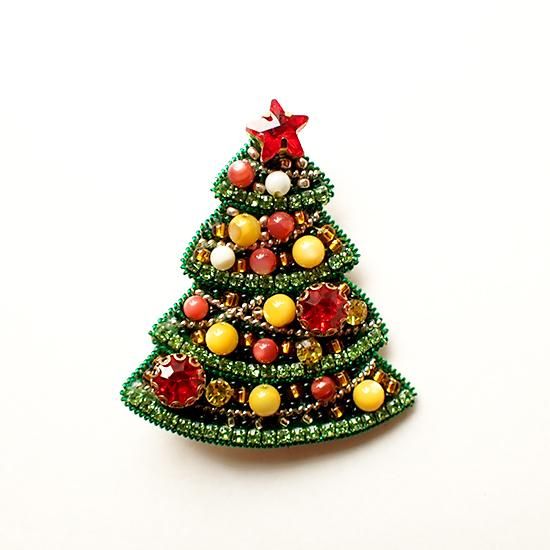 lim002 リトアニア ビーズ刺繍のブローチ クリスマスツリー