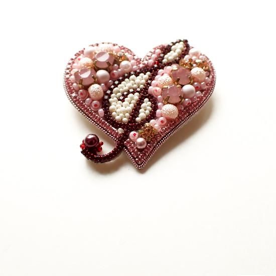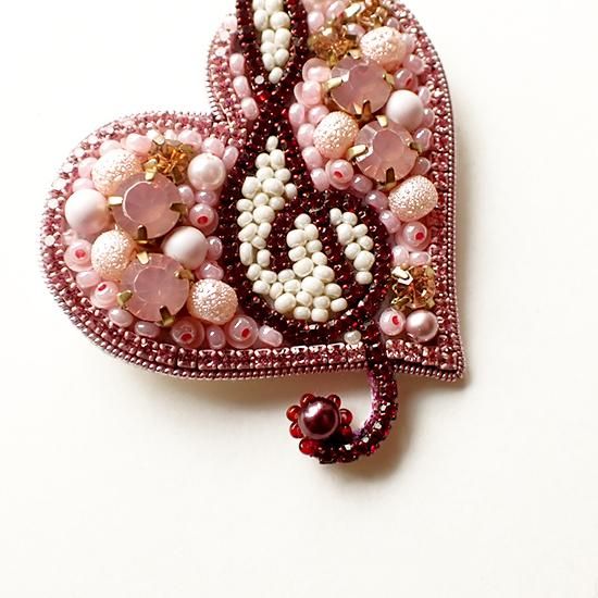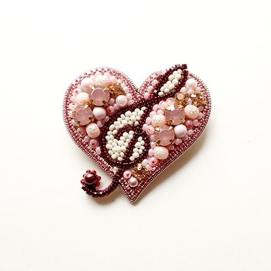 lim008 リトアニア ビーズ刺繍のブローチ ピンクハートのト音記号
