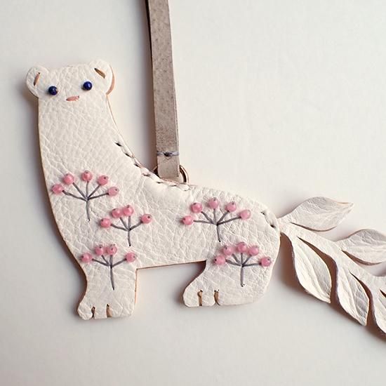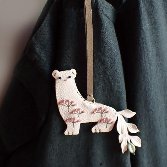 キョトンとした表情がなんともかわいらしいオコジョのチャームブローチ。