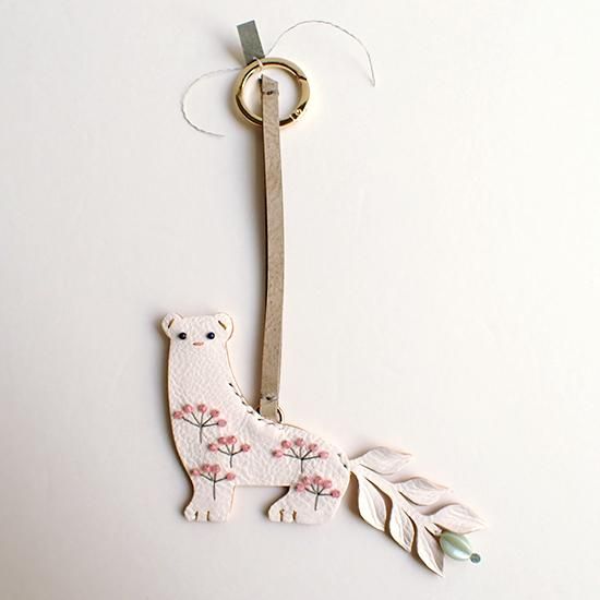 革のバッグにはもちろんのこと、あえて布製のエコバッグにつけるのも楽しい。夏にはカゴバッグ、冬にはファーバッグとのコラボも楽しめます。