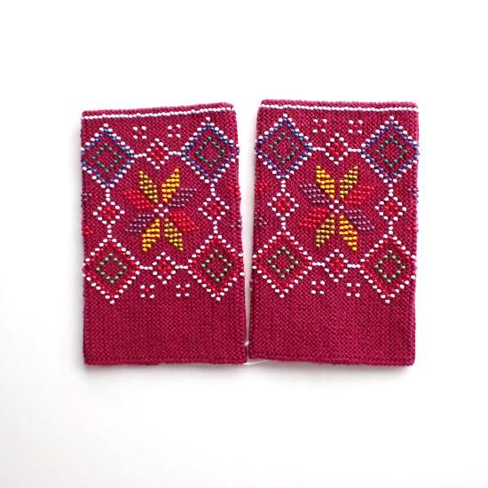 rie026 リトアニア ビーズ編みのリストウォーマー RIESINES エンジカラーにカラフルなビーズ柄 約幅8cm×長さ13cm