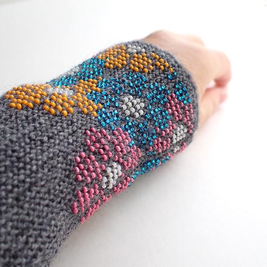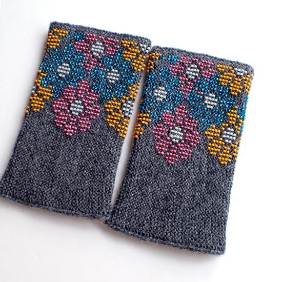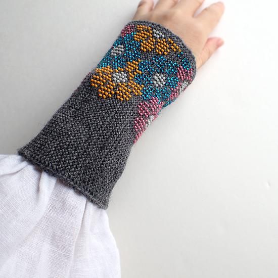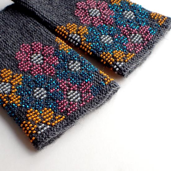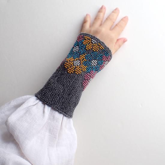 ニットにビーズで模様を編み込んだ、美しいリストウォーマー。リトアニアでは、昔から民族衣装に合わせて身につけていた伝統的な装飾品です。